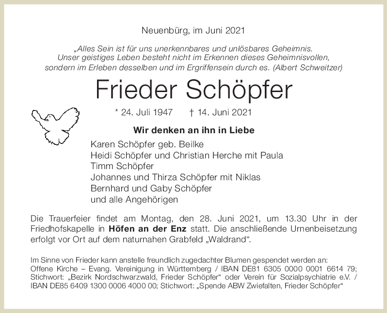 †14.06.2021, Ruhestätte: Friedhof Höfen an der Enz