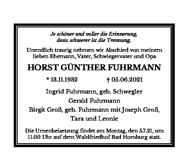 †05.06.2021, Ruhestätte: Waldfriedhof, Bad Homburg