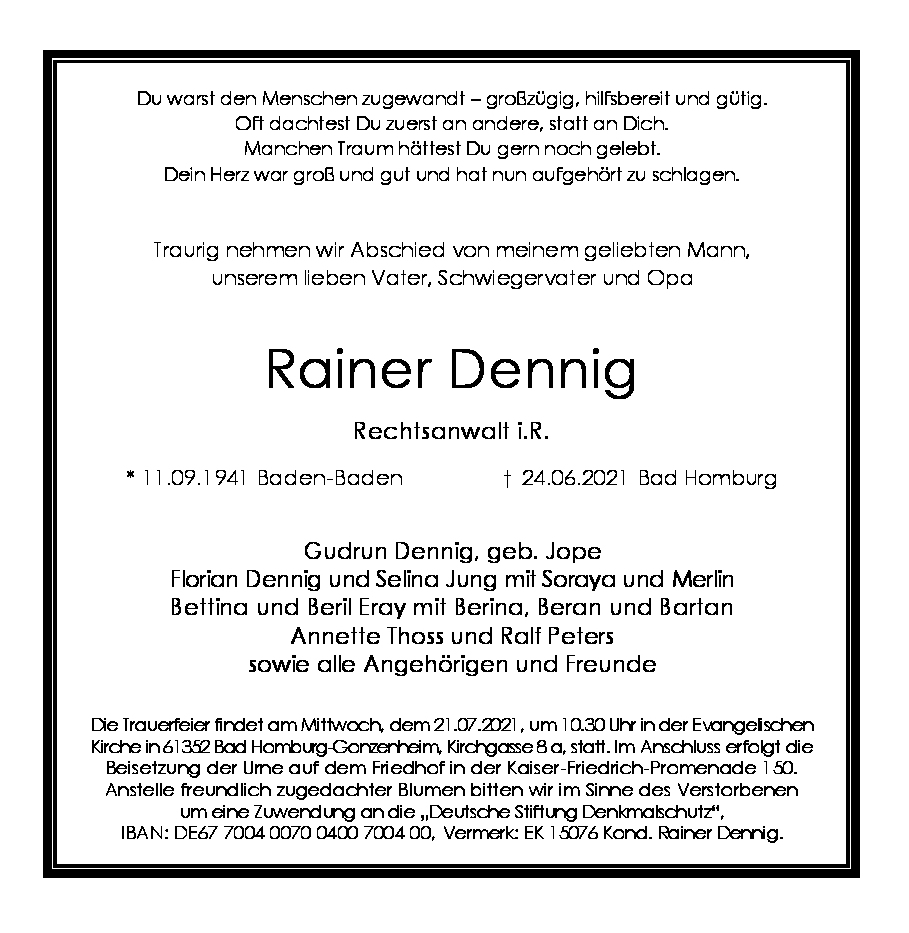 †24.06.2021, Ruhestätte: Gonzenheimer Friedhof, Bad Homburg