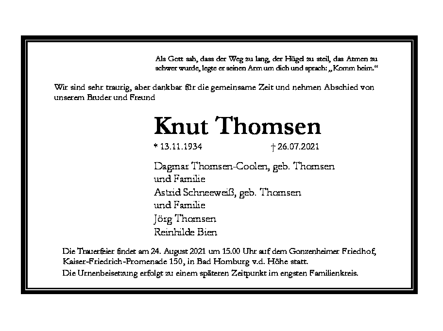 †26.07.2021, Ruhestätte: Gonzenheimer Friedhof, Bad Homburg