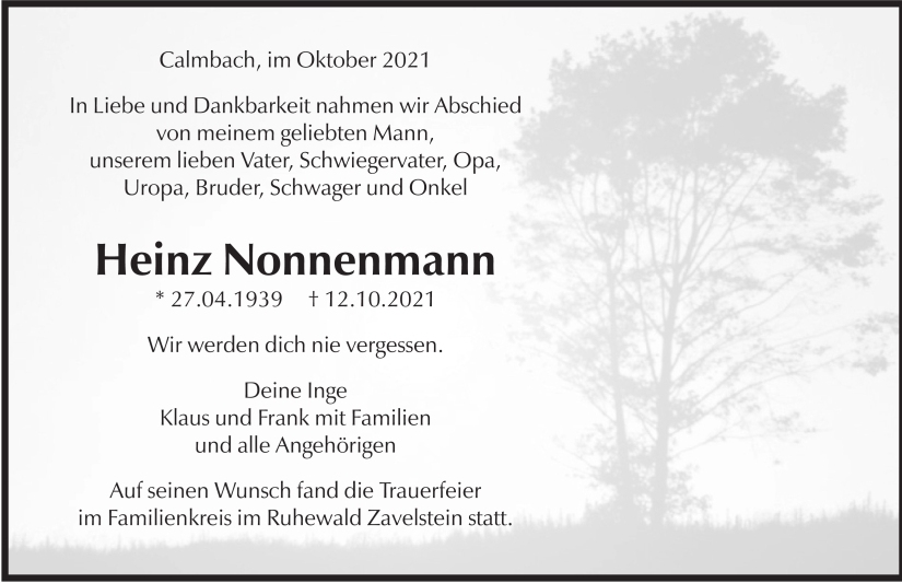 †12.10.2021, Ruhestätte: Ruhewald Zavelstein