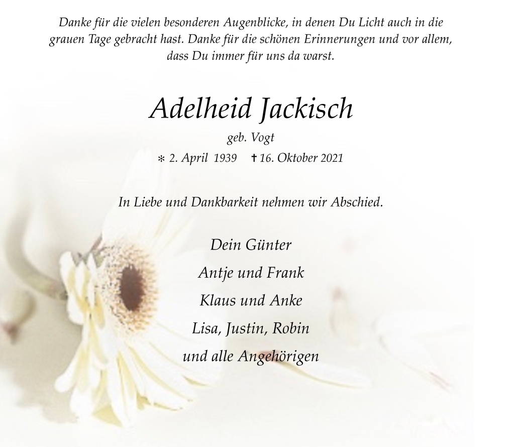 Diese Gedenkseite möge Ihnen dabei helfen, Ihre Trauer zu teilen und das Andenken gemeinsam wachzuhalten.