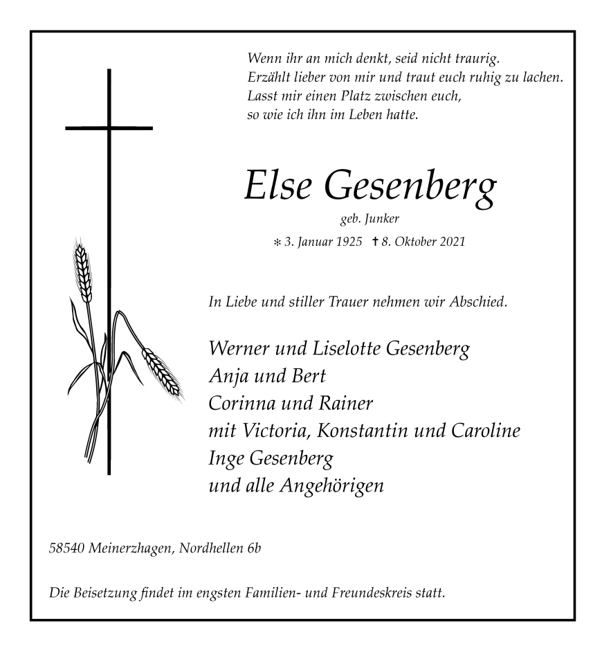 in diesen Tagen fühlen wir mit Ihnen und wünschen Ihnen von Herzen, dass Sie aus den glücklichen Erinnerungen Kraft schöpfen, um positiv in die Zukunft zu gehen.