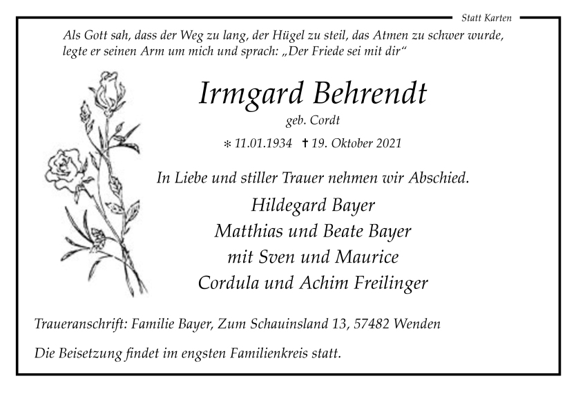 in diesen Tagen fühlen wir mit Ihnen und wünschen Ihnen von Herzen, dass Sie aus den glücklichen Erinnerungen Kraft schöpfen, um positiv in die Zukunft zu gehen. Diese Gedenkseite möge Ihnen dabei helfen, Ihre Trauer zu teilen und das Andenken gemeinsam wachzuhalten.