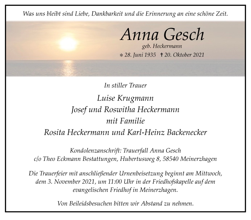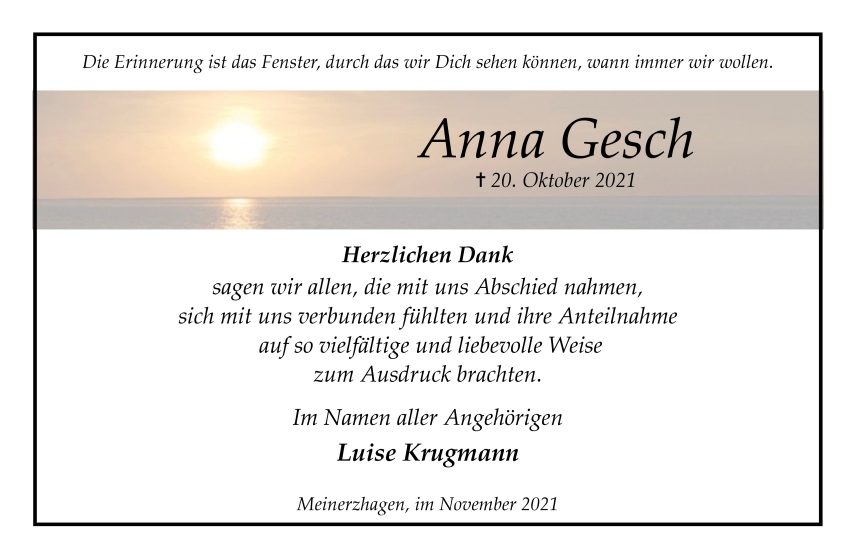 in diesen Tagen fühlen wir mit Ihnen und wünschen Ihnen von Herzen, dass Sie aus den glücklichen Erinnerungen Kraft schöpfen, um positiv in die Zukunft zu gehen. Diese Gedenkseite möge Ihnen dabei helfen, Ihre Trauer zu teilen und das Andenken gemeinsam wachzuhalten.