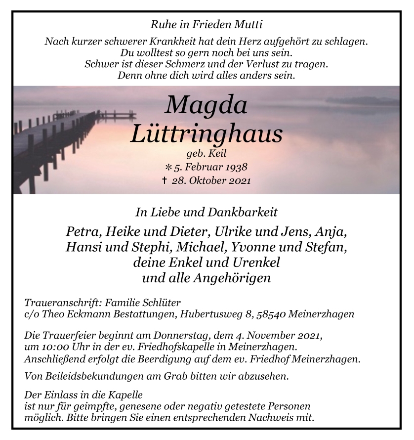 in diesen Tagen fühlen wir mit Ihnen und wünschen Ihnen von Herzen, dass Sie aus den glücklichen Erinnerungen Kraft schöpfen, um positiv in die Zukunft zu gehen. Diese Gedenkseite möge Ihnen dabei helfen, Ihre Trauer zu teilen und das Andenken gemeinsam wachzuhalten.