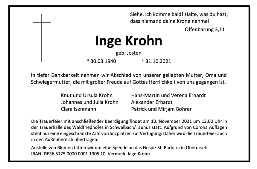 †31.10.2021, Ruhestätte: Waldfriedhof Schwalbach