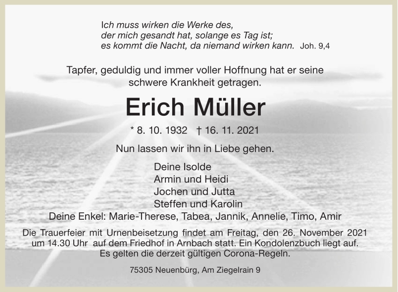 †16.11.2021, Ruhestätte: Friedhof Arnbach
