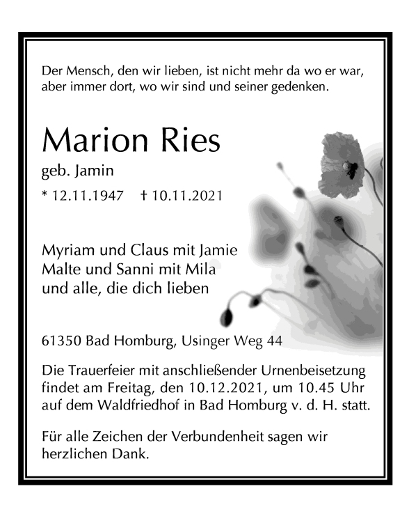 †10.11.2021, Ruhestätte: Waldfriedhof, Bad Homburg