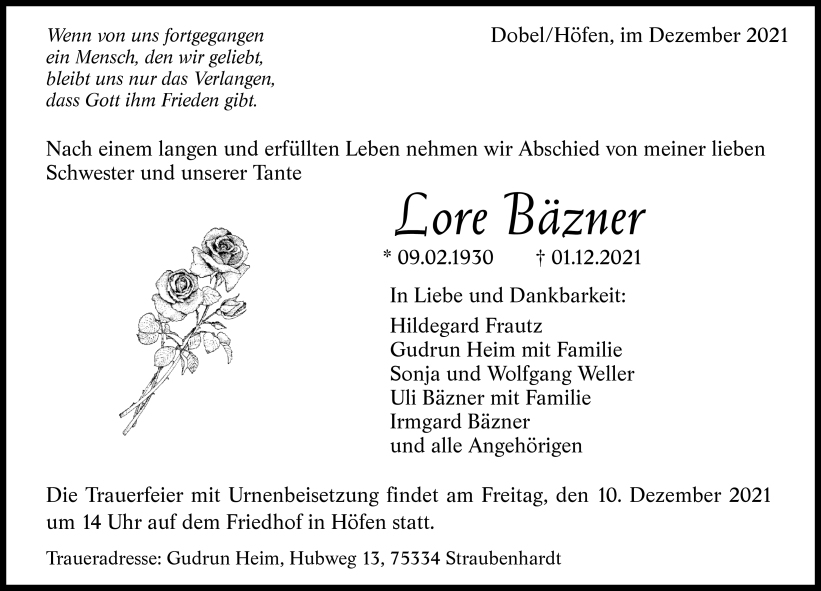 †01.12.2021, Ruhestätte: Friedhof Höfen an der Enz