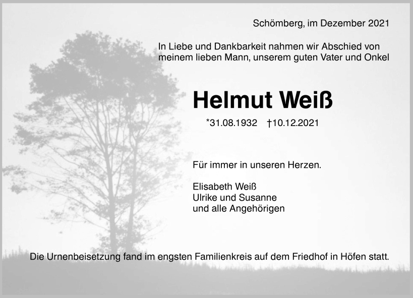 †10.12.2021, Ruhestätte: Friedhof Höfen an der Enz