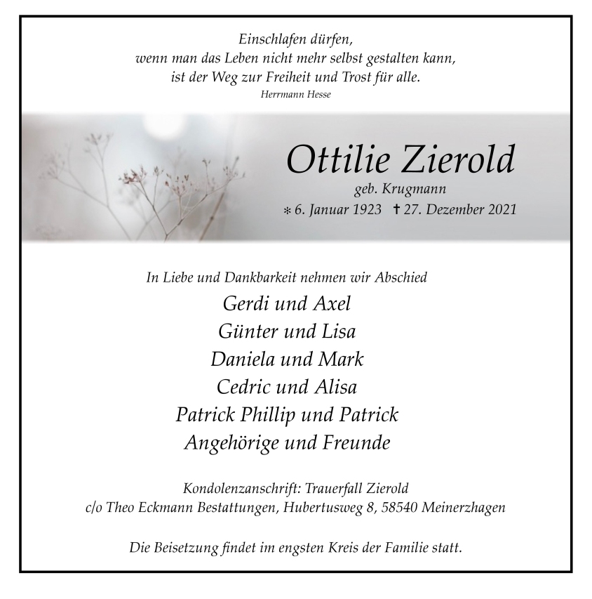 Theo Eckmann Bestattungen und Friedhofsgärtnerei, am 31.12.2021