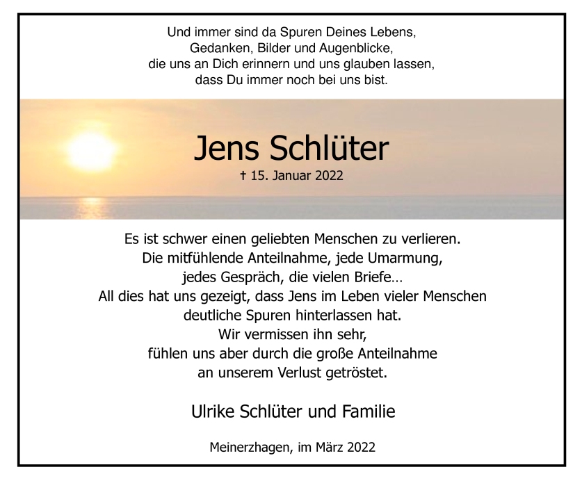 in diesen Tagen fühlen wir mit Ihnen und wünschen Ihnen von Herzen, dass Sie aus den glücklichen Erinnerungen Kraft schöpfen, um positiv in die Zukunft zu gehen. Diese Gedenkseite möge Ihnen dabei helfen, Ihre Trauer zu teilen und das Andenken gemeinsam wachzuhalten.