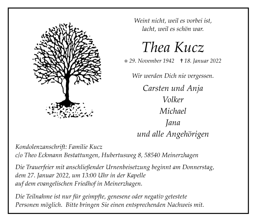 in diesen Tagen fühlen wir mit Ihnen und wünschen Ihnen von Herzen, dass Sie aus den glücklichen Erinnerungen Kraft schöpfen, um positiv in die Zukunft zu gehen. Diese Gedenkseite möge Ihnen dabei helfen, Ihre Trauer zu teilen und das Andenken gemeinsam wachzuhalten.