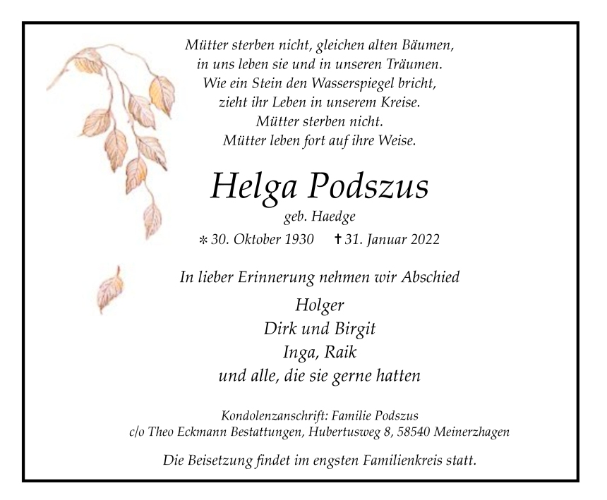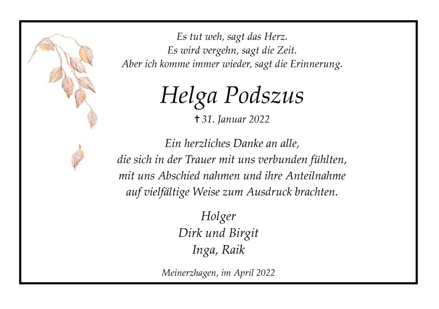 in diesen Tagen fühlen wir mit Ihnen und wünschen Ihnen von Herzen, dass Sie aus den glücklichen Erinnerungen Kraft schöpfen, um positiv in die Zukunft zu gehen. Diese Gedenkseite möge Ihnen dabei helfen, Ihre Trauer zu teilen und das Andenken gemeinsam wachzuhalten.