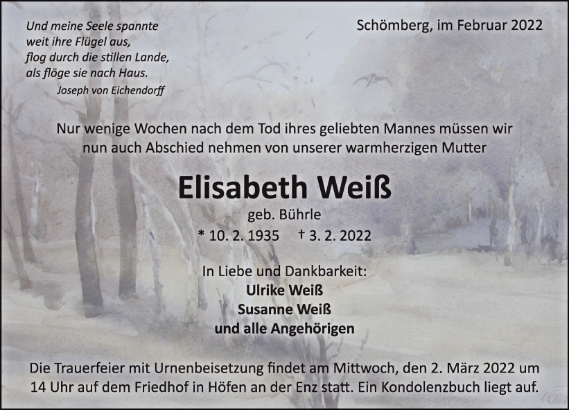 †03.02.2022, Ruhestätte: Friedhof Höfen an der Enz