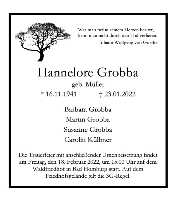 †23.01.2022, Ruhestätte: Waldfriedhof, Bad Homburg