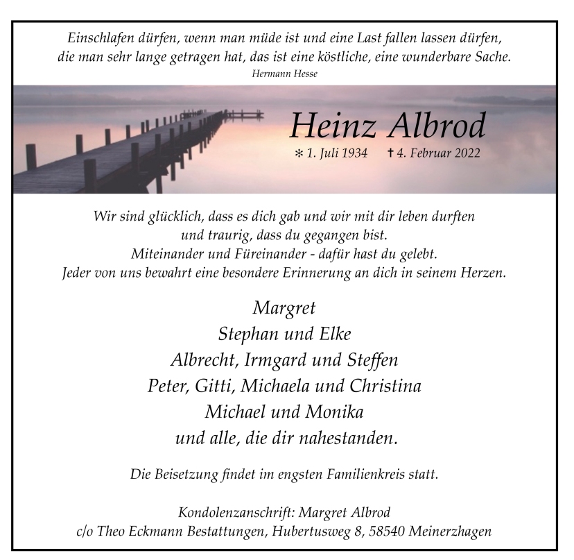 wir wünschen Ihnen von Herzen viel Kraft, dass Sie Menschen um sich haben, die Ihnen in dieser schweren Zeit beistehen und Halt geben. Zusätzlich können Sie auf dieser Gedenkseite Erinnerungen teilen und so das Andenken gemeinsam wachhalten.