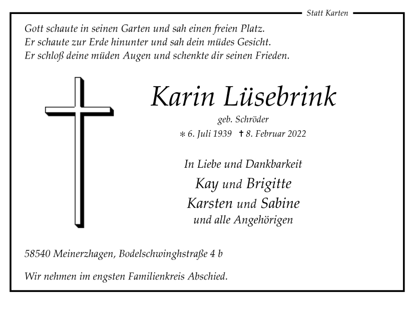 in diesen Tagen fühlen wir mit Ihnen und wünschen Ihnen von Herzen, dass Sie aus den glücklichen Erinnerungen Kraft schöpfen, um positiv in die Zukunft zu gehen. Diese Gedenkseite möge Ihnen dabei helfen, Ihre Trauer zu teilen und das Andenken gemeinsam wachzuhalten.
