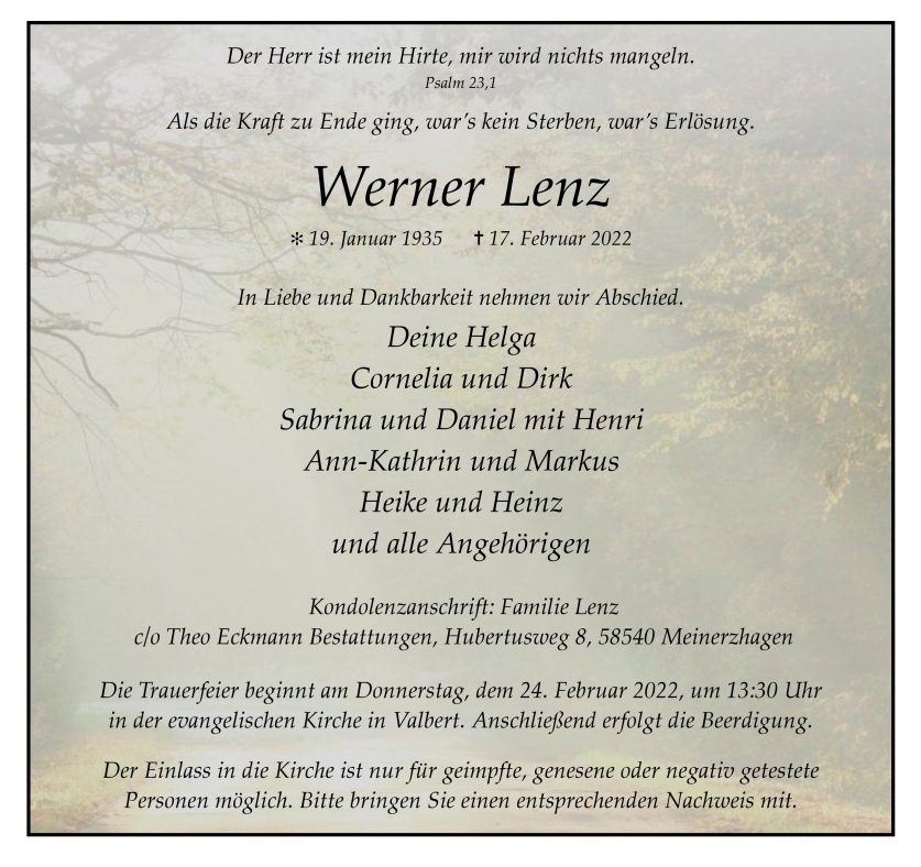 in diesen Tagen fühlen wir mit Ihnen und wünschen Ihnen von Herzen, dass Sie aus den glücklichen Erinnerungen Kraft schöpfen, um positiv in die Zukunft zu gehen. Diese Gedenkseite möge Ihnen dabei helfen, Ihre Trauer zu teilen und das Andenken gemeinsam wachzuhalten.