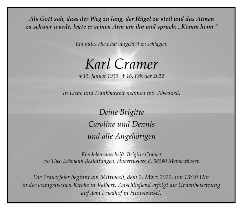 in diesen Tagen fühlen wir mit Ihnen und wünschen Ihnen von Herzen, dass Sie aus den glücklichen Erinnerungen Kraft schöpfen, um positiv in die Zukunft zu gehen. Diese Gedenkseite möge Ihnen dabei helfen, Ihre Trauer zu teilen und das Andenken gemeinsam wachzuhalten.