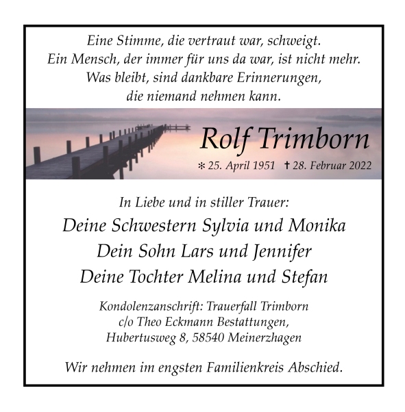 in diesen Tagen fühlen wir mit Ihnen und wünschen Ihnen von Herzen, dass Sie aus den glücklichen Erinnerungen Kraft schöpfen, um positiv in die Zukunft zu gehen. Diese Gedenkseite möge Ihnen dabei helfen, Ihre Trauer zu teilen und das Andenken gemeinsam wachzuhalten.