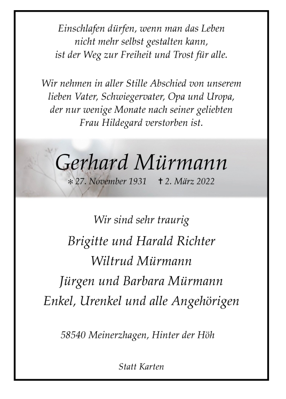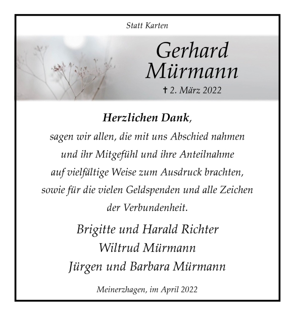in diesen Tagen fühlen wir mit Ihnen und wünschen Ihnen von Herzen, dass Sie aus den glücklichen Erinnerungen Kraft schöpfen, um positiv in die Zukunft zu gehen. Diese Gedenkseite möge Ihnen dabei helfen, Ihre Trauer zu teilen und das Andenken gemeinsam wachzuhalten.