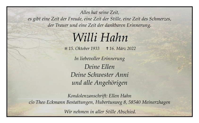 wir wünschen Ihnen von Herzen viel Kraft, dass Sie Menschen um sich haben, die Ihnen in dieser schweren Zeit beistehen und Halt geben. Zusätzlich können Sie auf dieser Gedenkseite Erinnerungen teilen und so das Andenken gemeinsam wachhalten.