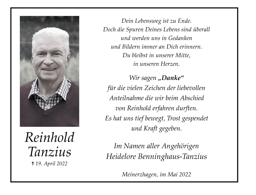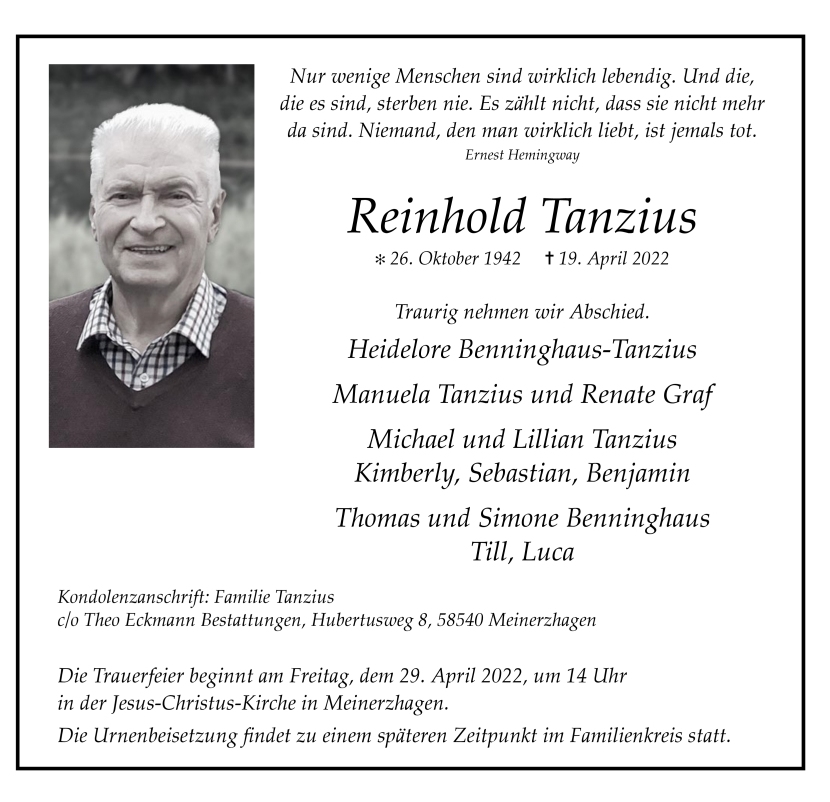 in diesen Tagen fühlen wir mit Ihnen und wünschen Ihnen von Herzen, dass Sie aus den glücklichen Erinnerungen Kraft schöpfen, um positiv in die Zukunft zu gehen. Diese Gedenkseite möge Ihnen dabei helfen, Ihre Trauer zu teilen und das Andenken gemeinsam wachzuhalten.