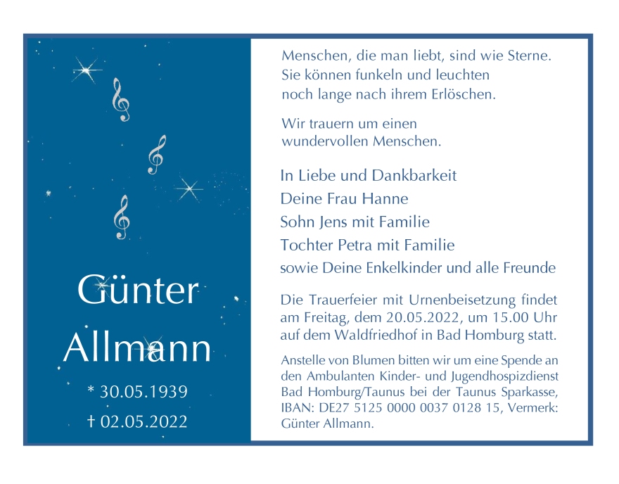 †02.05.2022, Ruhestätte: Waldfriedhof, Bad Homburg