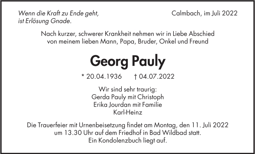 †04.07.2022, Ruhestätte: Waldfriedhof Bad Wildbad