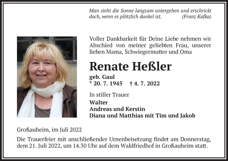 †04.07.2022, Ruhestätte: Friedhof Großauheim
