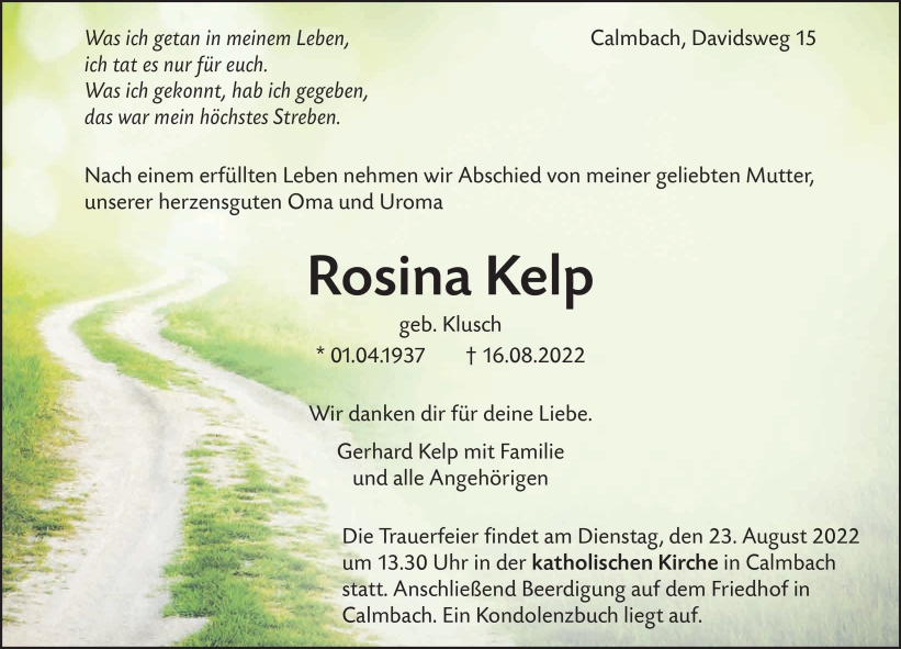 †16.08.2022, Ruhestätte: Friedhof Calmbach