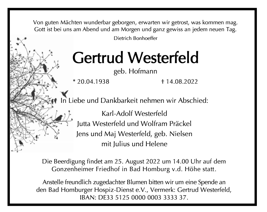 †14.08.2022, Ruhestätte: Gonzenheimer Friedhof, Bad Homburg