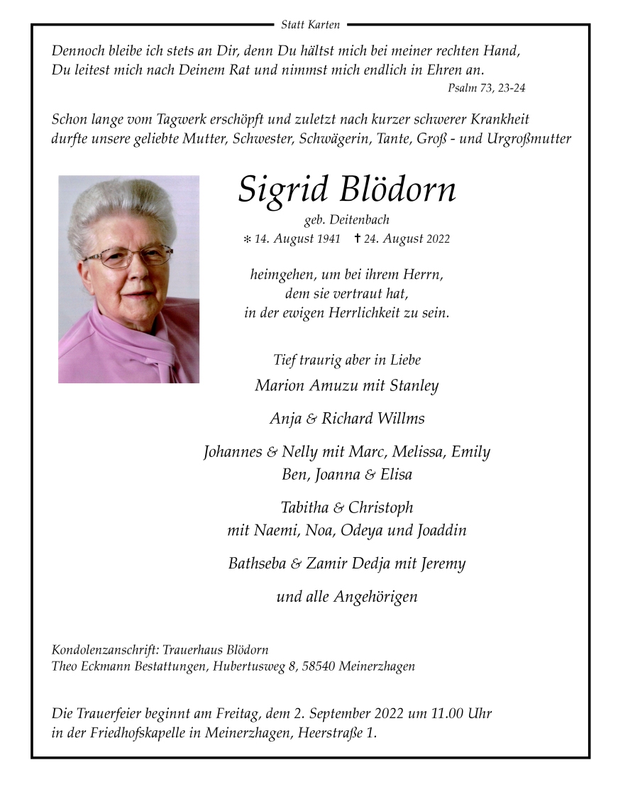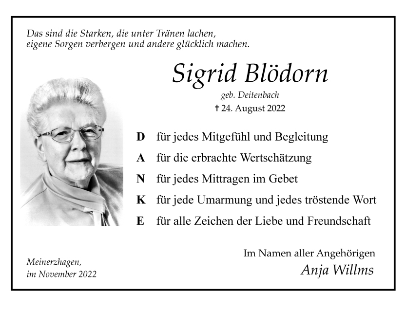 in diesen Tagen fühlen wir mit Ihnen und wünschen Ihnen von Herzen, dass Sie aus den glücklichen Erinnerungen Kraft schöpfen, um positiv in die Zukunft zu gehen. Diese Gedenkseite möge Ihnen dabei helfen, Ihre Trauer zu teilen und das Andenken gemeinsam wachzuhalten.