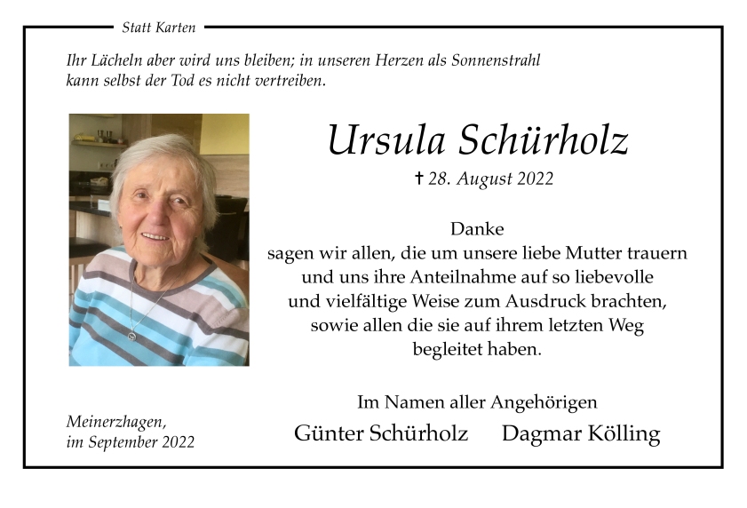 in diesen Tagen fühlen wir mit Ihnen und wünschen Ihnen von Herzen, dass Sie aus den glücklichen Erinnerungen Kraft schöpfen, um positiv in die Zukunft zu gehen. Diese Gedenkseite möge Ihnen dabei helfen, Ihre Trauer zu teilen und das Andenken gemeinsam wachzuhalten.