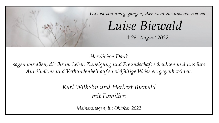 in diesen Tagen fühlen wir mit Ihnen und wünschen Ihnen von Herzen, dass Sie aus den glücklichen Erinnerungen Kraft schöpfen, um positiv in die Zukunft zu gehen. Diese Gedenkseite möge Ihnen dabei helfen, Ihre Trauer zu teilen und das Andenken gemeinsam wachzuhalten.