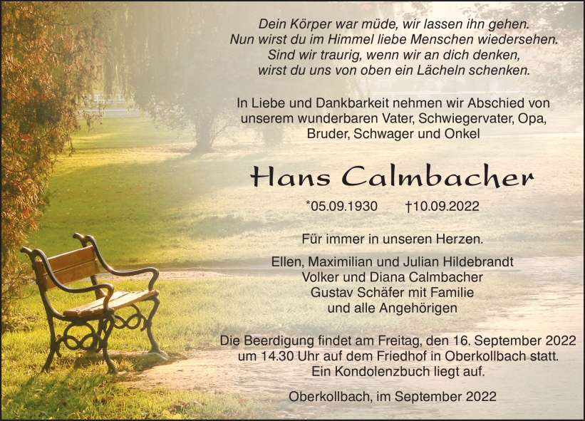 †10.09.2022, Ruhestätte: Friedhof Oberkollbach