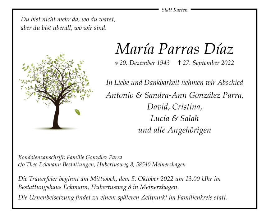 in diesen Tagen fühlen wir mit Ihnen und wünschen Ihnen von Herzen, dass Sie aus den glücklichen Erinnerungen Kraft schöpfen, um positiv in die Zukunft zu gehen. Diese Gedenkseite möge Ihnen dabei helfen, Ihre Trauer zu teilen und das Andenken gemeinsam wachzuhalten.