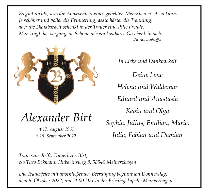 in dieser Zeit des Schmerzes wünschen wir Ihnen Kraft, den Verlust im Kreise Ihrer Liebsten zu verarbeiten. Als Zeichen unserer Anteilnahme und des Gedenkens entzünden wir dieses erste Licht. Möge diese Gedenkseite Ihnen helfen, Erinnerungen zu teilen und so das Andenken gemeinsam wachzuhalten.