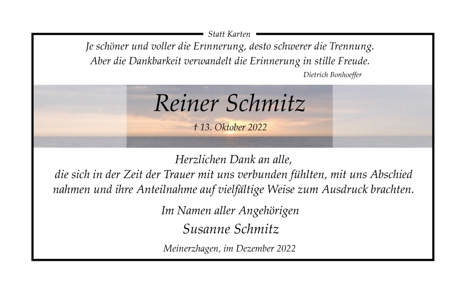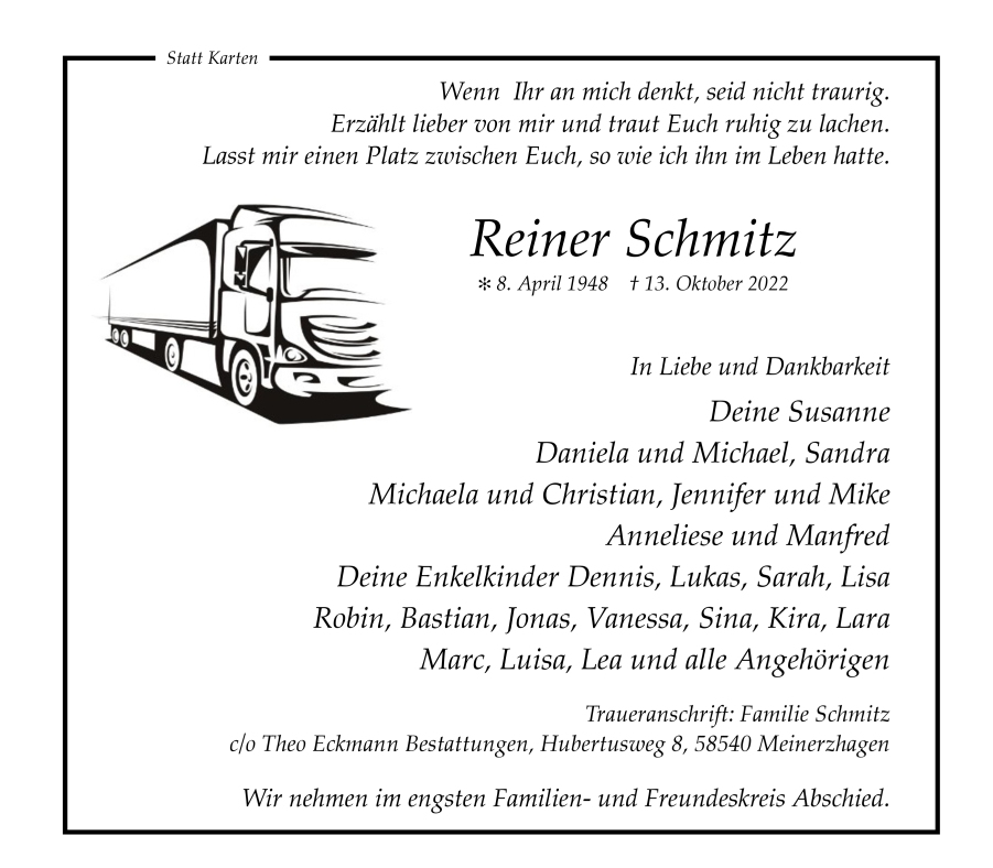 in diesen Tagen fühlen wir mit Ihnen und wünschen Ihnen von Herzen, dass Sie aus den glücklichen Erinnerungen Kraft schöpfen, um positiv in die Zukunft zu gehen. Diese Gedenkseite möge Ihnen dabei helfen, Ihre Trauer zu teilen und das Andenken gemeinsam wachzuhalten.