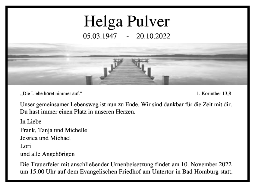 †20.10.2002, Ruhestätte: Ev. Friedhof, Bad Homburg