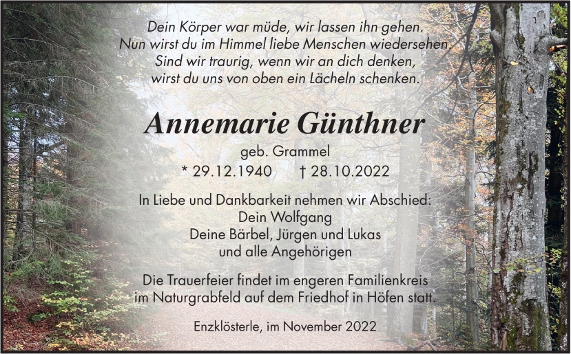 †28.10.2022, Ruhestätte: Friedhof Höfen an der Enz