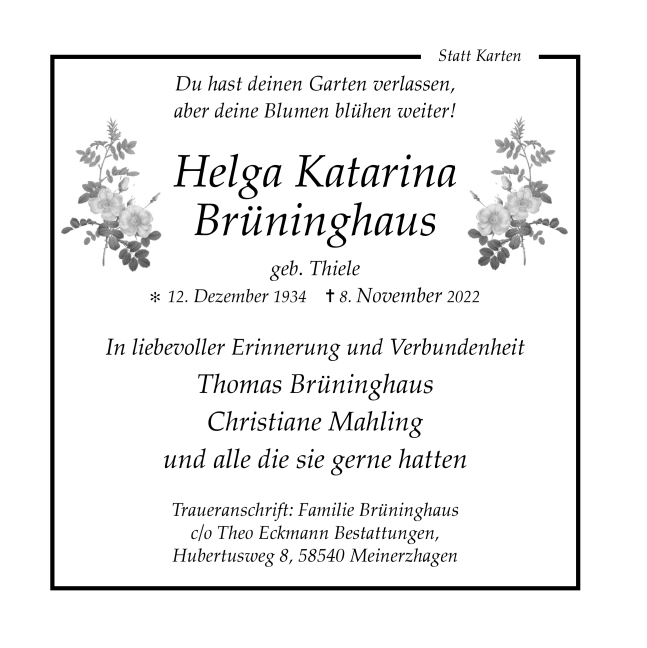 in diesen Tagen fühlen wir mit Ihnen und wünschen Ihnen von Herzen, dass Sie aus den glücklichen Erinnerungen Kraft schöpfen, um positiv in die Zukunft zu gehen. Diese Gedenkseite möge Ihnen dabei helfen, Ihre Trauer zu teilen und das Andenken gemeinsam wachzuhalten.