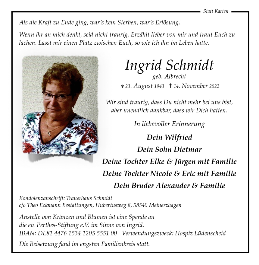 in diesen Tagen fühlen wir mit Ihnen und wünschen Ihnen von Herzen, dass Sie aus den glücklichen Erinnerungen Kraft schöpfen, um positiv in die Zukunft zu gehen. Diese Gedenkseite möge Ihnen dabei helfen, Ihre Trauer zu teilen und das Andenken gemeinsam wachzuhalten.