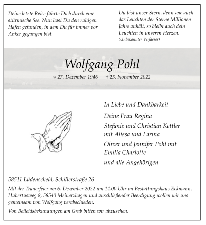 in diesen Tagen fühlen wir mit Ihnen und wünschen Ihnen von Herzen, dass Sie aus den glücklichen Erinnerungen Kraft schöpfen, um positiv in die Zukunft zu gehen. Diese Gedenkseite möge Ihnen dabei helfen, Ihre Trauer zu teilen und das Andenken gemeinsam wachzuhalten.