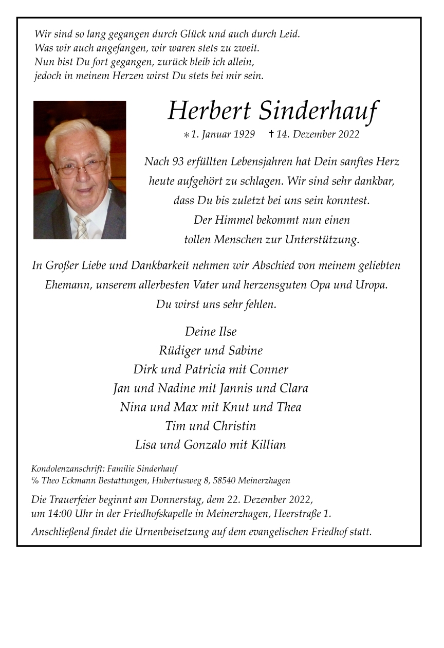 Liebe Familie Sinderhauf,