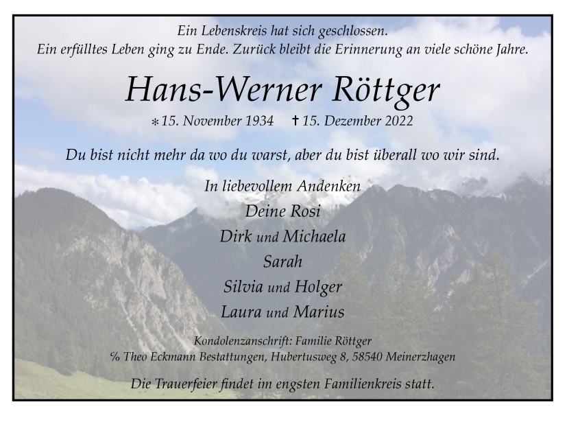 in diesen Tagen fühlen wir mit Ihnen und wünschen Ihnen von Herzen, dass Sie aus den glücklichen Erinnerungen Kraft schöpfen, um positiv in die Zukunft zu gehen. Diese Gedenkseite möge Ihnen dabei helfen, Ihre Trauer zu teilen und das Andenken gemeinsam wachzuhalten.