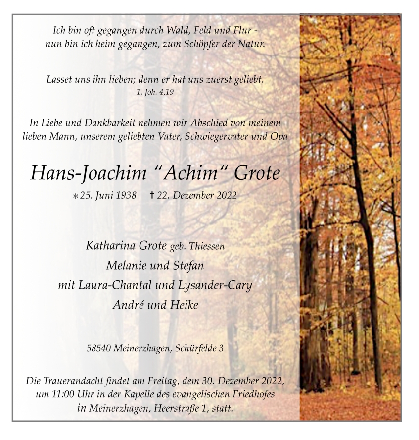 Theo Eckmann Bestattungen, am 28.12.2022