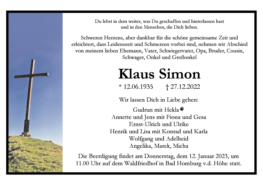 †27.12.2022, Ruhestätte: Waldfriedhof, Bad Homburg